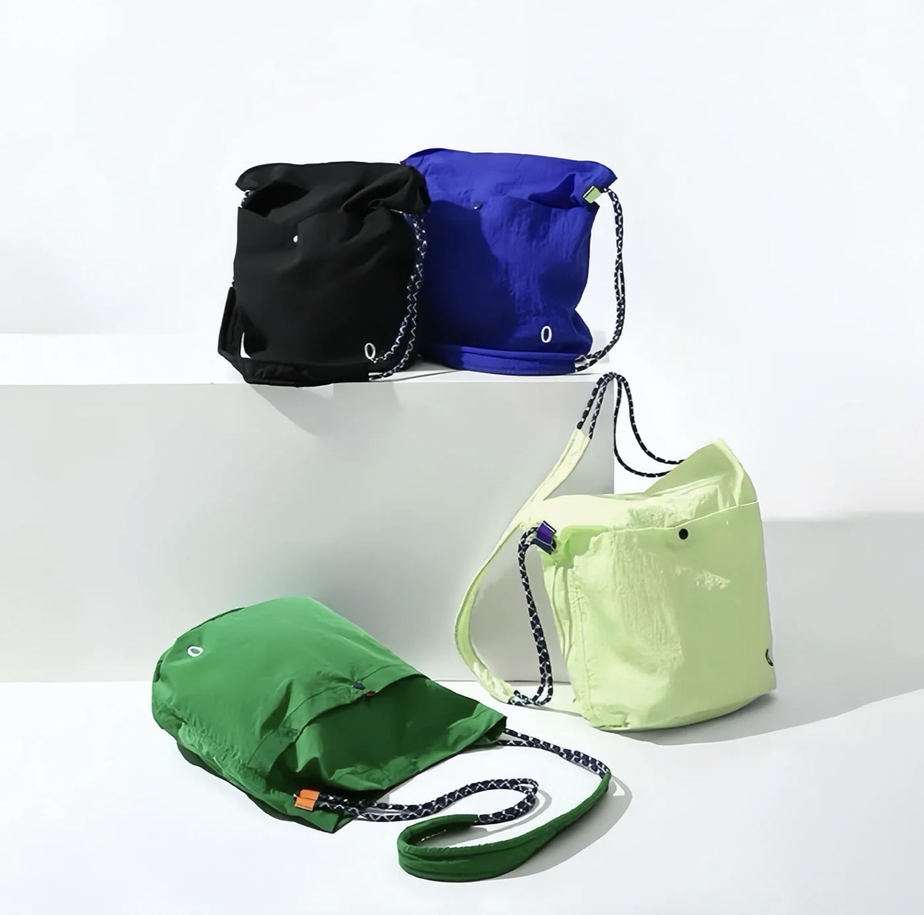 Borsa shopper in naylon impermeabile, con tracolla regolabile