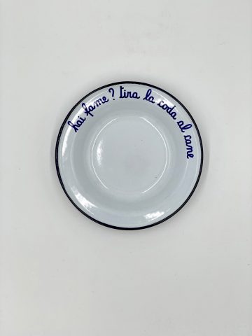Piatto cupo in latta smaltata con frase personalizzata